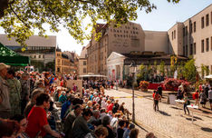 Willkommen und Lebewohl, unter diesem Motto lassen sich die diesjährigen traditionellen Feierlichkeiten unseres Theaters zum Ersten Mai gut zusammenfassen. Es war die erste Veranstaltung anlässlich dieses besonderen Feiertages unter der Leitung von Mille Maria Dalsgaard und Mareike Mikat. Ein schöneres Willkommen hätten ihnen das sonnige Wetter und das fröhliche Publikum kaum bescheren können. So kamen auch in diesem Jahr mehrere tausend Menschen auf dem Uni-Platz in Halle zusammen – gut gelaunt, kulinarisch bestens versorgt und großartig unterhalten. Bunt und vielfältig ist das Programm des neue theaters und des Thalia Theaters. Bunt und facettenreich war das Programm zum Ersten Mai. Musikalisch sorgten die Band „Preliminary Injuncton“ um Lena Zipp, der Kinder- und Jugendchor der Oper Halle, unser scheindender Schauspiel-Studio-Jahrgang 2024 sowie – vom Publikum sehnlichst erwartet – unser wundervolles Ensemble mit dem traditionellen Mai-Singen für glückliche Herzen und aktive Tanzbeine. Es gab allerlei Zauberhaftes für die ganze Familie, zum Beispiel eine Hüpfburg und einen Clown. Unser Förderverein war wieder mit dem Glücksrad für Groß und Klein vor Ort. Viele angenehme und freundliche Gespräche über Kunst und Kultur ließen die Zeit für uns schnell verfliegen. Ein herzliches Dankeschön an dieser Stelle an unser gesamtes Team – es war eine tolle Zusammenarbeit. Auf der Bühne kamen neben unserer künstlerischen Leitung verschiedene hallesche Persönlichkeiten zu Wort. Eine Besonderheit für das Publikum war in diesem Jahr definitiv, dass sowohl die neue als auch die ehemalige Intendanz Reden hielten. Matthias Brenner teilte seine Bühne in Gedanken und wundervollen Anekdoten mit dem kürzlich verstorbenen Peter Sodann, dem wir unsere gesamte Kulturlandschaft und so vieles mehr zu verdanken haben. Eine Ehrung der Person Sodann und seines Lebenswerkes gab es nicht nur auf der Bühne, sondern als besonderes Highlight auch in der Kammer. Unser stellvertretender Vorsitzender Till Schmidt hat Peter Sodann mit einem bewegenden Film gewürdigt. Willkommen und Lebewohl – so oft sind diese beiden tragenden Pfeiler unseres Lebens Thema auf der Bühne, so oft beschäftigen sie uns alle außerhalb des Theaters. Umso dankbarer sind wir für Tage wie diesen, an dem Menschen friedlich und glücklich zusammenkommen, Kunst und Kultur wertschätzen und das Leben feiern, mit den Sonnen- und den Regentagen, mit Willkommen und Lebewohl.